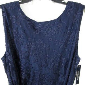 NWT Tahari Arthur S. Levine Dark Navy with Lace Overlay Sleeveless Dress, 20W