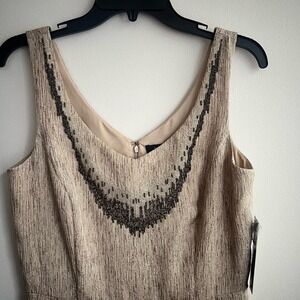 NWT Tahari Arthur S. Levine Valerie Light Caramel Sleeveless Beaded Dress