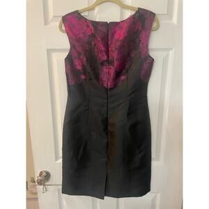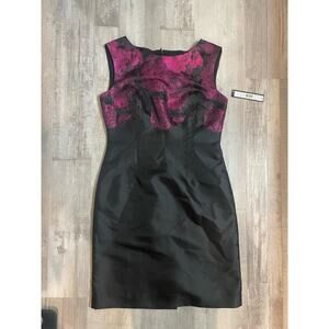NWT Tahari Arthur S. Levine size 6. Moody metallic pink and black jacquard colors this gorgeous party dress that gracefully plays up curves. Hidden back-zip with hook and eye closure this dress has slight cap sleeves, bateau neck and back slit. Fully lined.