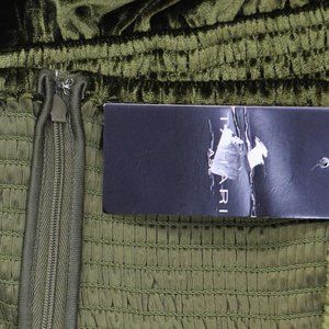 NWT Tahari Asl Velvet Square-Neck Ruched-Sleeve Dress 12 Olive Green