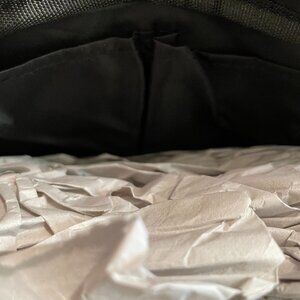 New with tags, Tahari Brandi quilted black crossbody bag. Polyvinyl. Approximately 10 inches across and 6 inches wide. Open pockets on one side, and zippered pocket on the other. Questions? Leave a comment below!