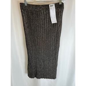 NWT Tahari Black Shimmer Metallic Pleated Midi Skirt Size M