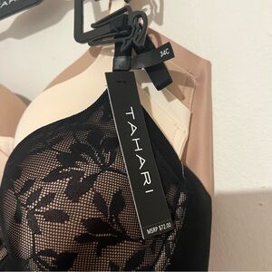 NWT Tahari Black and Cream Floral Lace Bra