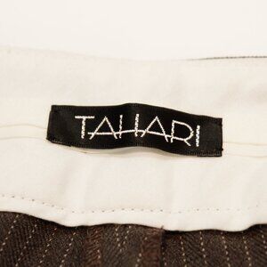 Tahari dress pants. These NWT pinstripe trousers in warm brown bring a flattering Tahari fit with a soft academia spin. Known for their polish and curve-skimming tailoring, they pair effortlessly with blazers or knits—perfect for smart-casual offices or weekend edits.