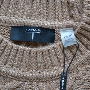 Get cozy in this beautiful Tahari knit sweater! This sweater is brand new with tags and has never been worn. The neutral brown color makes it a versatile piece that can be dressed up or down. Perfect for layering during the cooler months or wearing on its own during transitional seasons.