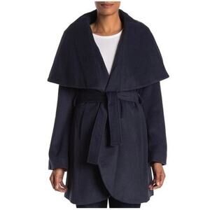 NWT Tahari Marla Wool-Blend Wrap Coat Navy Women’s Size Large $300