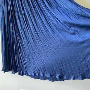NWT Tahari Pleated Accordion Crinkle Flowy Maxi Skirt Sapphire Blue Size M