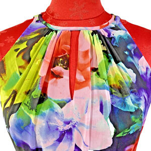 NWT Tahari Sleeveless Maxi Dress Size 6 Sheer Multicolor Floral Watercolor Print