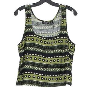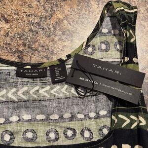 NWT Tahari Top Linen Boho 90s Festival Earthy Minimalist Square Neck Green Large