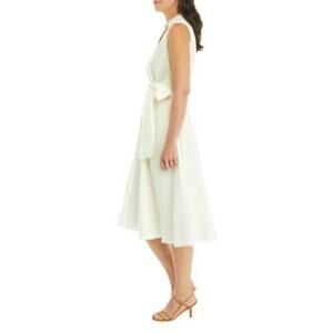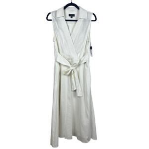 NWT: Tahari White Shirt Dress Women's 10 Linen Blend Belted Sleeveless (M540)