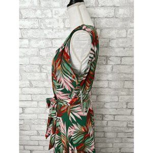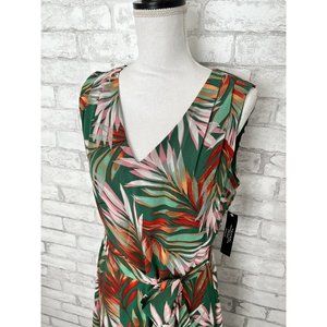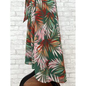 NWT! Tahari Woman’s 12 Green Red Pink Palm Fern Tropical Maxi Hi Low Dress $99