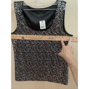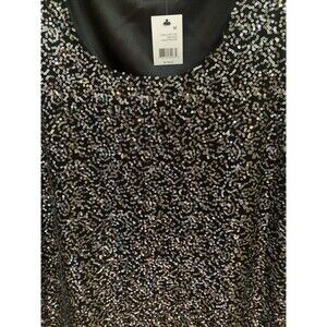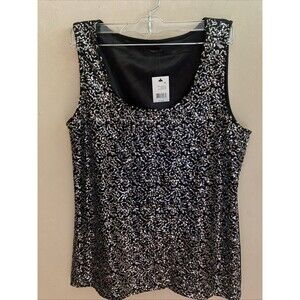 NWT Tahari Women Camilla Blouse Tank Top Black/Pewter Sequins Sz M $178 Ret.