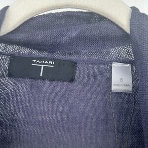 Tahari Womens Fall Beachy Lightweight 100% Linen Open Front Cardigan in Navy Blue. Size small.