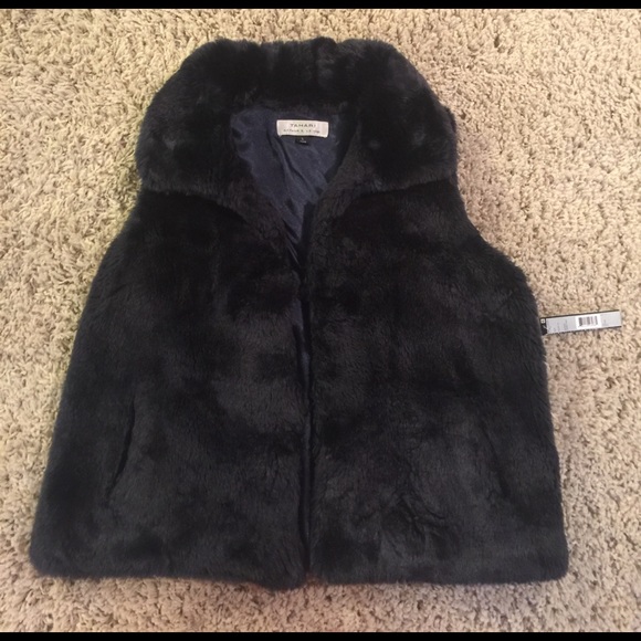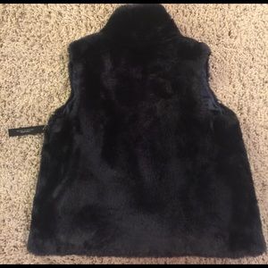 NWT Tahari by ASL navy blue fur vest. The best is lined on the inside and full faux fur (including collar) on the front and back. The vest has 3 hook and eye closures blended into the fur on the front. Please don't hesitate to ask questions!