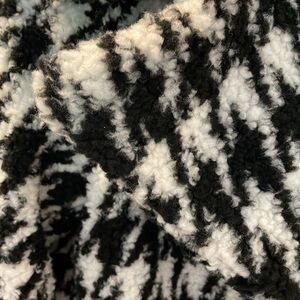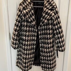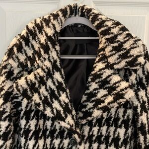 Brand new! Great quality! Medium thickness black/white faux fur style. 2 pockets with inside lining. Large collar.