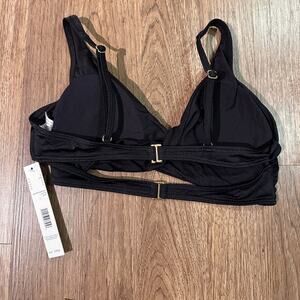 NWT Tahari wrap hook back black bikini top size large