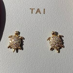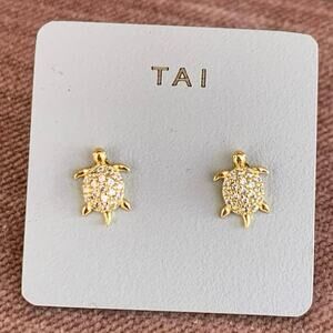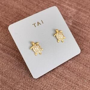 NWT Tai Pave Cubic Zirconia CZ Gold Plated Turtle Stud Earrings: Beach Vacation