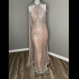 NWT Halston Adriana One-Shoulder Sequin Gown Size 2 $595