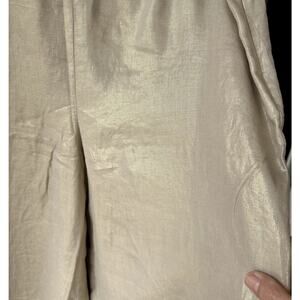 NWT Talbots 100% Linen Wide Leg Cropped Pants with Gold Metallic Coating, Sz 12