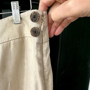 Rich and polished--that's the best way to describe these NWT Talbots 100% linen pants. They have a side zip and faux horn button closure, flat front, and wide leg cropped styling. The 100% linen fabrication is perfect for summer's hottest days. But the thing that sets THESE linen pants apart is the metallic gold shimmer! Not garish or over-the-top. Just enough to add polish and elevate the classic linen pant to a more polished look. Beautiful!