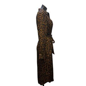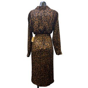 NWT Talbots Animal Print Brown Dress With Belt Button Down Leopard Midi Long Sle