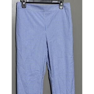 NWT Talbots Ankle Length Gingham Blue White Pants Size 4 Cotton Mix side zipper
