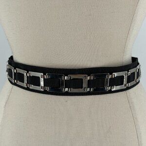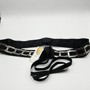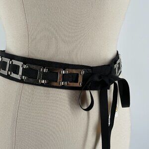 NWT Talbots Black Grosgrain Ribbon Silver Metal Square Snaps Tied Waist Belt Small