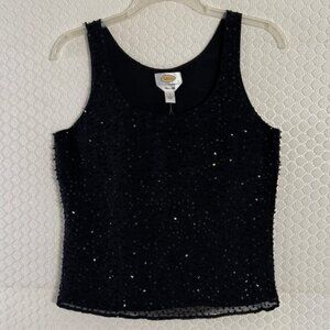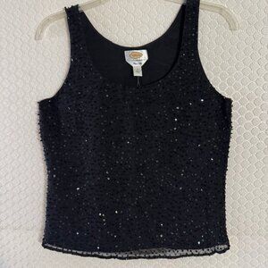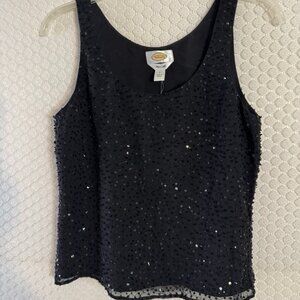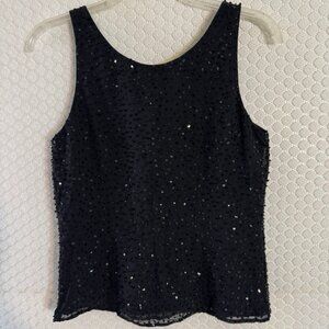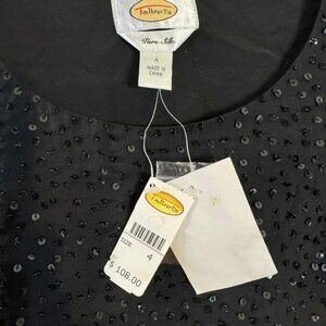 NWT Talbots Black Round Neck Pure Silk Sequins Bead Lined Tank Size 4