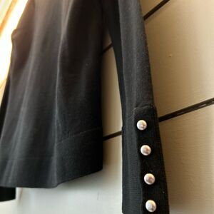 NWT Talbots Black Scoop Neck Sweater with Silver Pearl Cuff Detail, Size S