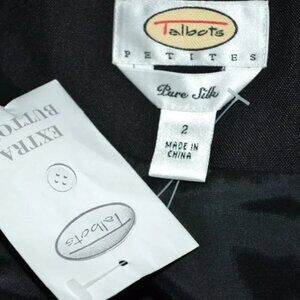 Offered is this darling dress by Talbots. The dress is solid black raw pure silk with gorgeous crystal rhinestone side buttons; the buttons are decorative only - the dress has a rear zip closure. The garment is new with attached BUTTON BAG - PRICE TAG is no longer attached.