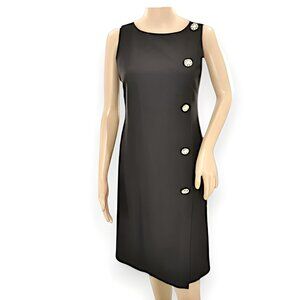 NWT Talbots Black Silk Crystal Side Button Sheath Shift Cocktail Dress 2P Petite