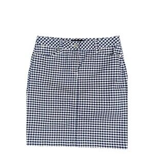 NWT Talbots Blue & White Gingham Flat Front Stretch Denim Skirt Sz- 14 Preppy