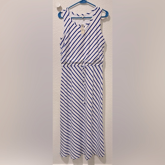 NWT Talbots maxi dress with navy and white diagonal stripes. Sleeveless design with a keyhole neckline.