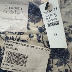 NWT Talbots Chatham Ankle Pants Blue Floral Print Stretch Size 12 Cotton Blend