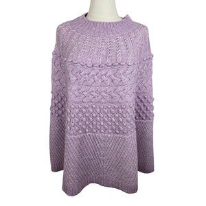 NWT! Talbots Chunky Cable Knit Poncho Lilac Size Large Mockneck Cozy Warm Boho