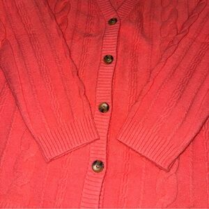NWT Talbots Coral Pink Cable Knit V-Neck Cardigan Sweater Women’s L Button Front
