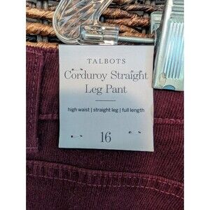 NWT Talbots Corduroy Straight Leg Pants Womens 16 Maroon High Waisted Rise Wine