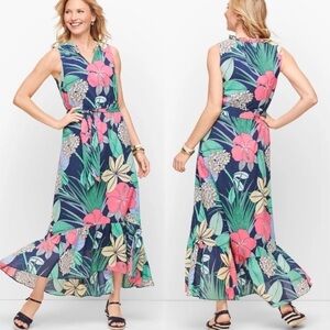 NWT Talbots Cotton Voile Hibiscus Sleeveless Ruffle Maxi Dress
