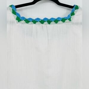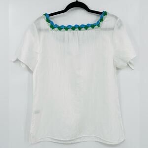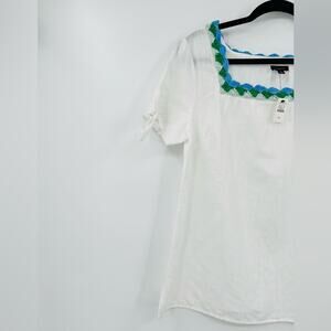 ๐ NWT Talbots Crochet Trim Linen Top Blouse Peasant Top Square Neck Bow Tie Sleeves Short Sleeve Side Slit Hem White Blue Sky Blue Mint Green Coastal Beach Vacation Size Medium