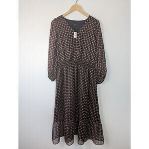 NWT Talbots Dainty Medallion Fit & Flare Midi Dress. 3/4 length sheer sleeves, v-neck, faux buttons on top.
