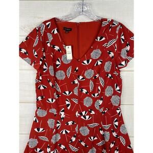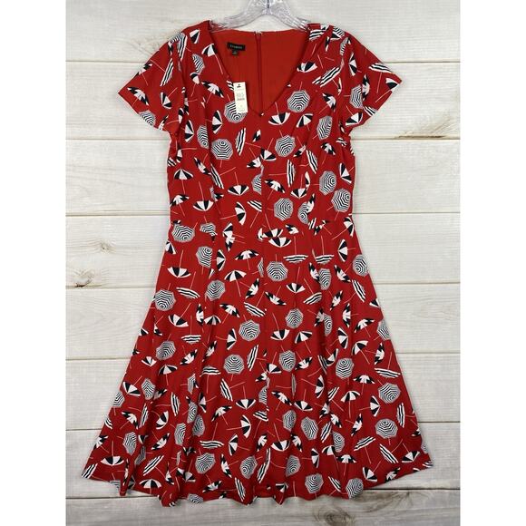 NWT Talbots Dress Sz 12 Red Beach Umbrellas Martini V Neck Lined Sheath NWT