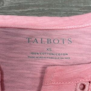NWT Talbots Embroider Lace Trim Split Neck Tee Gardenia Pink in size XS. Excellent new condition. 100% cotton, soft lightweight fabric. Please see photos for approximate measurements and details. Item may show difference in color based upon photography and perception. Photos are part of the description, as everyone’s level of condition may vary. From smoke free and pet free home. All packages are shipped the same or next business day.