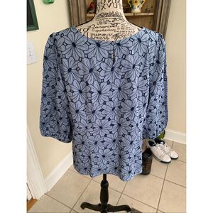 TALBOTS FLORAL EYELET TOP - CHAMBRAY size large. NWT. Retails for $109. Effortlessly chic. This chambray eyelet top features beautiful embroidery for an ultra-feminine look.