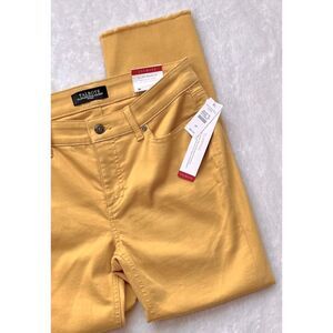 NWT Talbots Flawless Five Pocket Frayed Hem Slim Ankle Jeans in Yellow, Size 4P