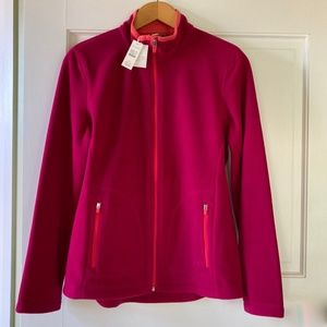 NWT Talbots Fleece Jacket Size M Deep Pink Medium Weight Front Zip Zip Pockets
