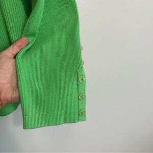 Vibrant green ribbed knit top. Soft and stylish. Perfect for casual wear.