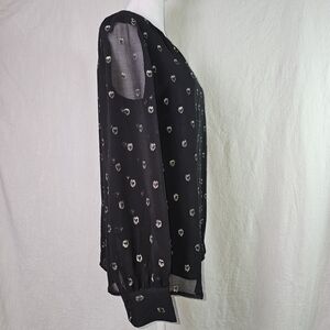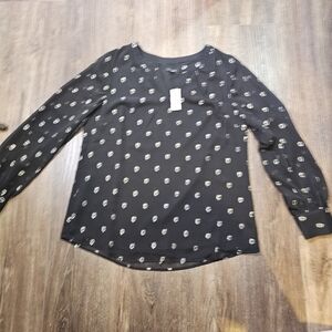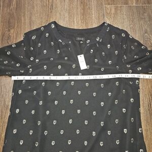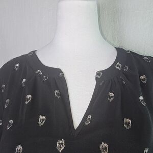 NWT Talbots Heart Jacquard Womens Blouse Sz M Black Metallic Semi Sheer