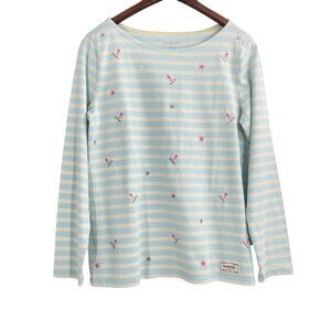 NWT Talbots Ice Skating Embroidered Striped Shirt Womens Size Medium Winter