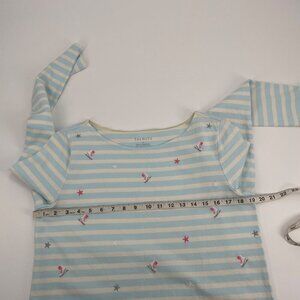 This NWT Talbots Ice Skating Embroidered Striped Shirt in blue and white is perfect for winter. It's a women's size medium and made from comfortable cotton.