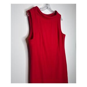 Elegant and timeless, this Talbots sleeveless sheath dress is crafted from luxurious Italian flannel for a soft, refined feel with a touch of structure. Designed in a striking vibrant red hue, it features a boat neckline, darted tailoring, and a flattering knee-length silhouette that skims the body beautifully. Perfect for work, holidays, or special occasions. Fully lined with a back zip closure for a smooth fit.